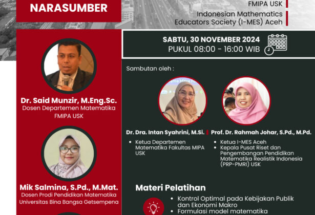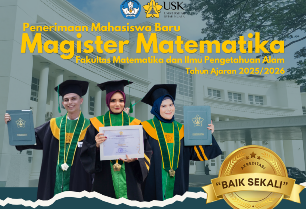 The Master’s Program in Mathematics (PSMMAT USK), established in 2012 and managed by FMIPA since 2016, offers four concentrations: Dynamic Mathematical Modeling, Optimal Control, Mathematical Optimization, and Mathematics Learning Technology.