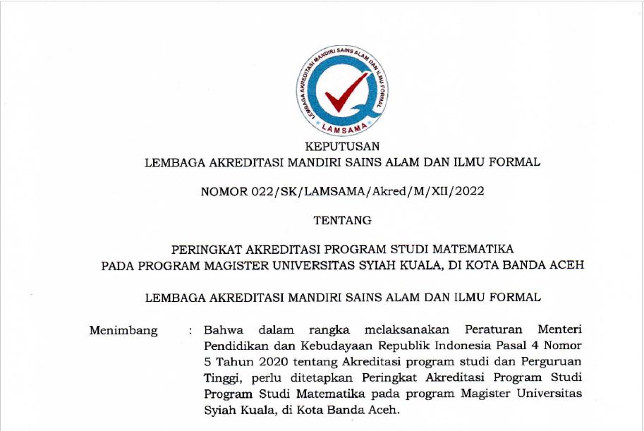 Mathematics Master Accreditation